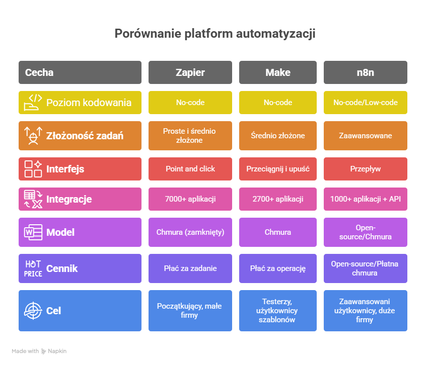 Nowoczesne narzędzia automatyzacji (jak Make, n8n czy Zapier) pozwalają tworzyć bardziej złożone scenariusze z wieloma działaniami następującymi po sobie lub równolegle.